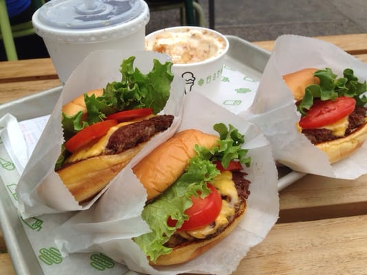Тоже сеть заведений, где подают самые идеальные, в плане ингредиентов, бургеры: котлета, сыр, помидор, салат латук, соус. По мимо этого у них очень вкусная картошка фри с сыром. Чем же это место отличается от противного макдака или вэндис? Во-первых, бургер начинают готовить после того, как поступил заказ, то есть, он не лежит и не тухнет в коробке на стенде. Более того, используется только свежее (не замороженное) мясо. И это не просто пустые слова, чтобы привлечь клиентов, кухня находится за стеклом, что позволяет видеть процесс приготовления. Другой отличительной особенностью является эко-интерьер (Например, столы сделаны из старой дорожки для боулинга). И наконец, сеть shake shack дог-фрэндли, не только туда можно приводить своих лохматых друзей, но и купить им там вкусняшки. Сингл шэйк бургер и картошка с сыром, $9.14 без налога